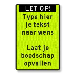 Tekstbord staand, banner en eigen tekst, fluor groen/zwart