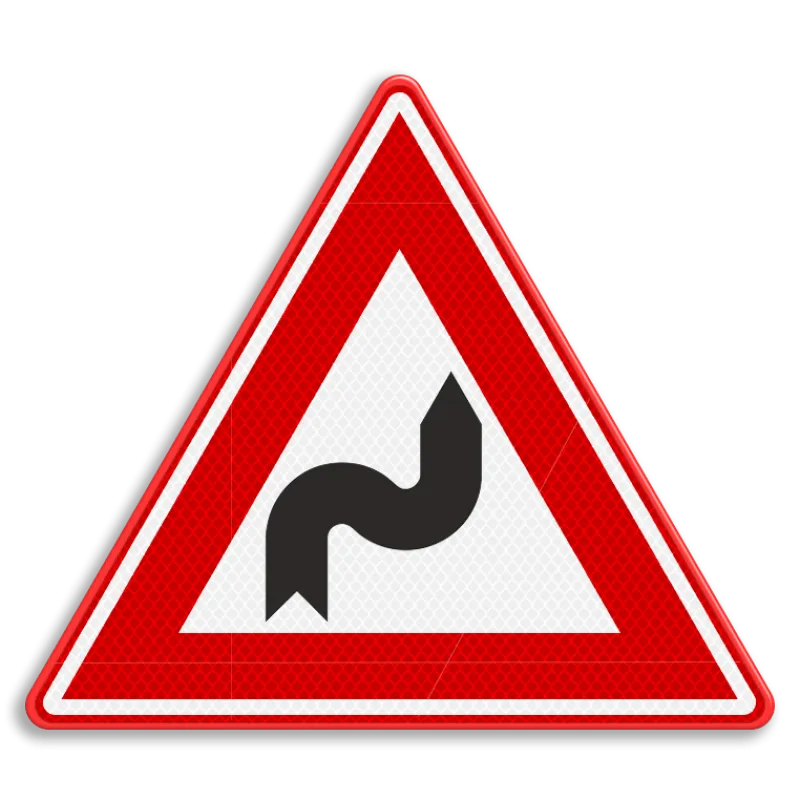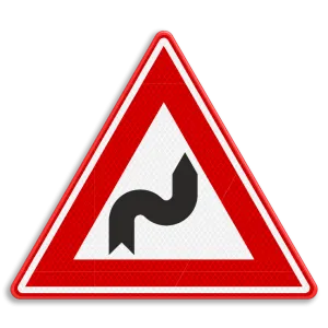 Verkeersbord S-bocht(en) rechts, links met dubbel omgezette rand