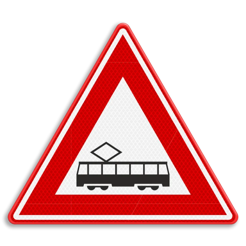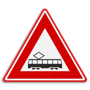 Officieel verkeersbord RVV J14 - Waarschuwing tram(kruising)
