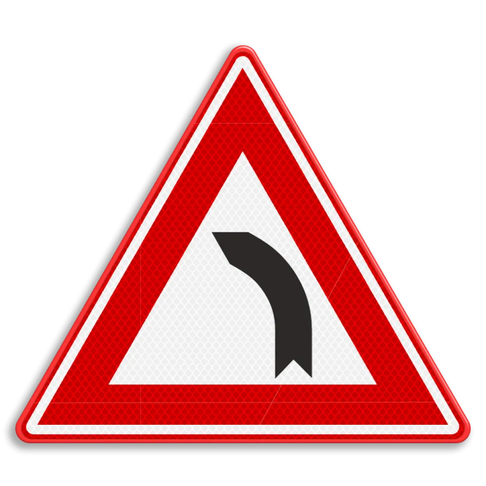 Het verkeersbord RVV J17 waarschuwing rijbaan versmalling is leverbaar in verschillende afmetingen (types):