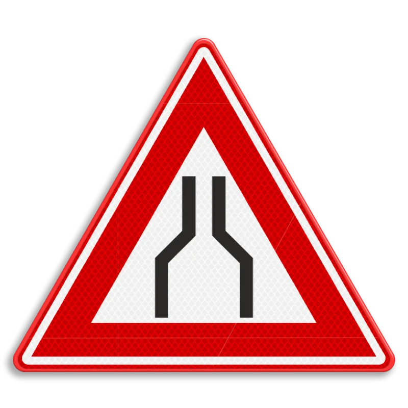 Verkeersbord RVV J17 - Waarschuwing rijbaanversmalling