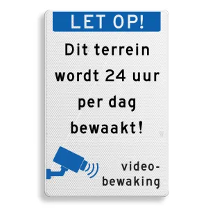 Kenmerken verkeersbord video bewaking, banner + eigen tekst