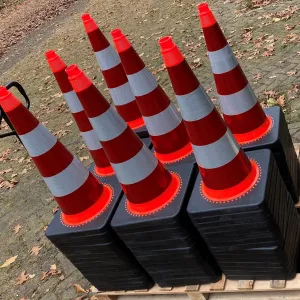 Misverstand over verkeerskegels met verzwaarde voet (zwarte).