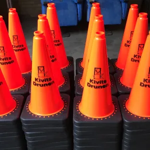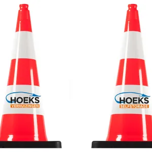 Laat je afzetkegels bedrukken voor opvallende reclame en voor het beschermen van je eigendommen. Wij bedrukken de kegels met speciale duurzame inkt zodat deze, ondanks het stapelen en het gebruik, langdurig zichtbaar blijft.